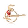 Designed with intricate enamel detailing, this elegant piece features a graceful ballerina dressed in a bold red leotard, accented with gold decorative elements that bring a festive, vintage-inspired look.