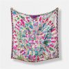 A delightful floral print adorns this airy square scarf rendered in soft silk polyester.