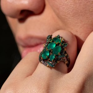 - Main stones:Â Green Spinel, White Cubic Zirconia CZ
