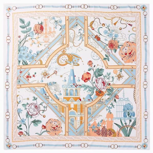A whimsical floral pattern lends to a stylish square scarf rendered in lustrous silk. Romantic, fresh, and ultra feminine – everything you need to get away is packed on the print of this pretty scarf made from silk and signature hand rolled hem.