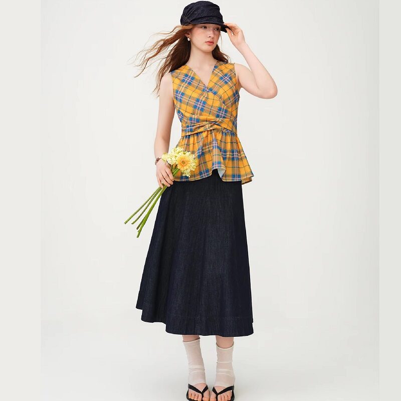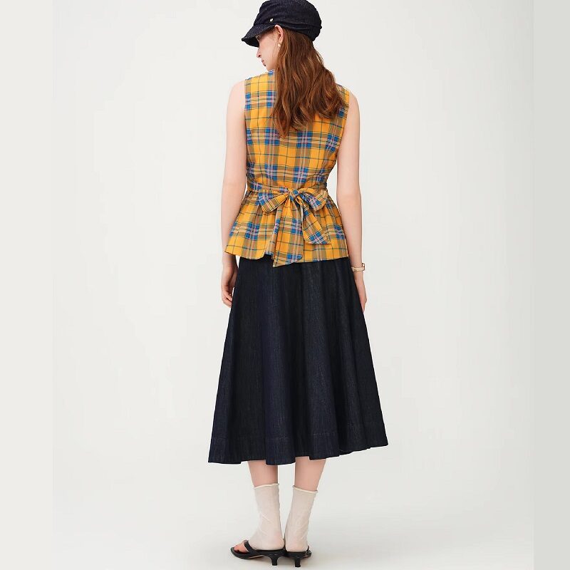 This piece reimagines the timeless Glen Plaid pattern through a contemporary, sculptural silhouette. The sophisticated wrap-style front creates a natural V-neckline that draws the eye, offering a sharp, “power-dressing” aesthetic while maintaining a lightweight and breezy feel.