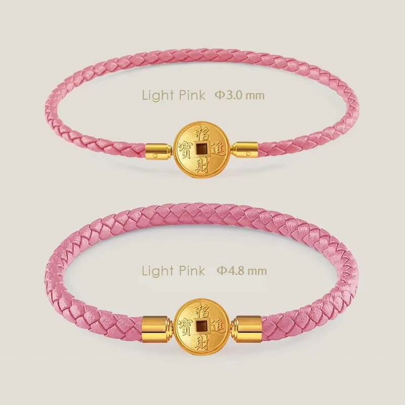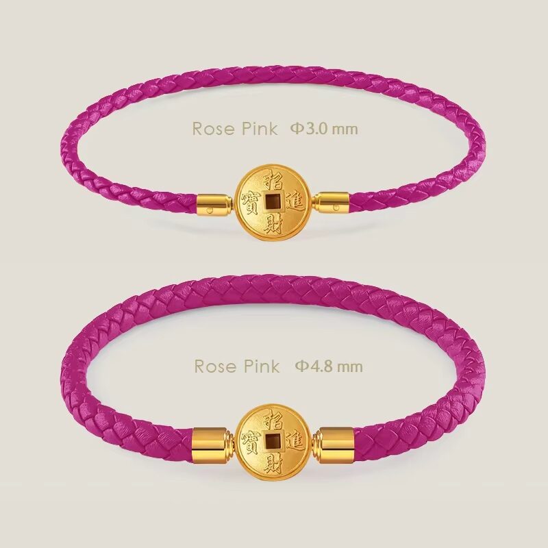 Fortune Pink Charm 24K Gold Plated Chinese Coin Bracelet