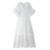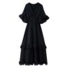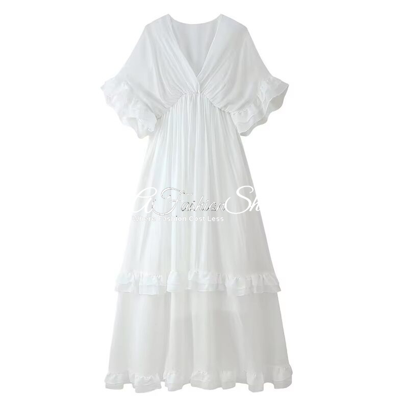 Rows of ruffles joyfully animate a tiered dress cut from polished cotton-blend.